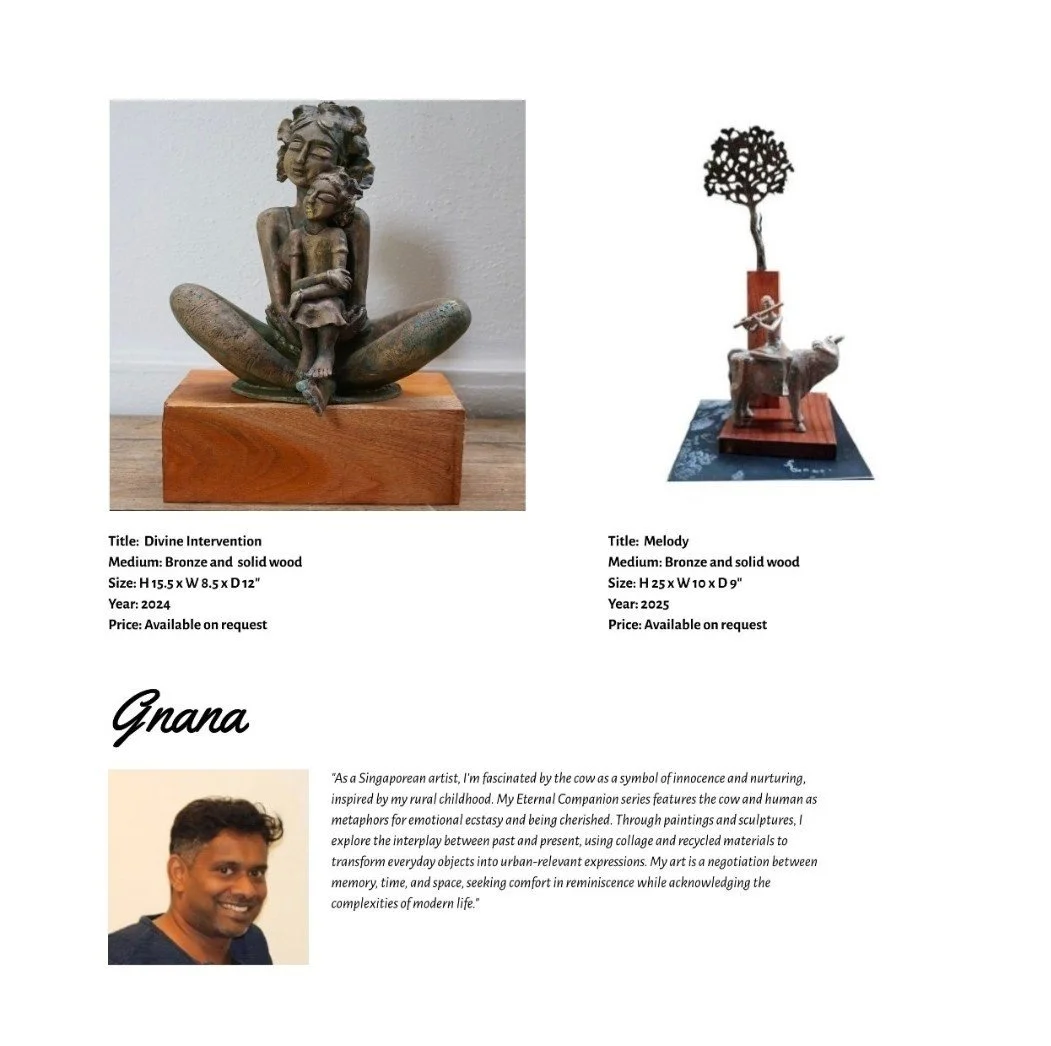 Dr. P. Gnana's style is a compelling dialogue between abstraction and figuration, utilizing the monumental cow motif to explore the metaphysical dimensions of love and devotion across vibrant mixed-media canvases and enduring bronze and reclaimed metal sculptures, establishing him as one of Singapore's most distinguished and celebrated international artists.